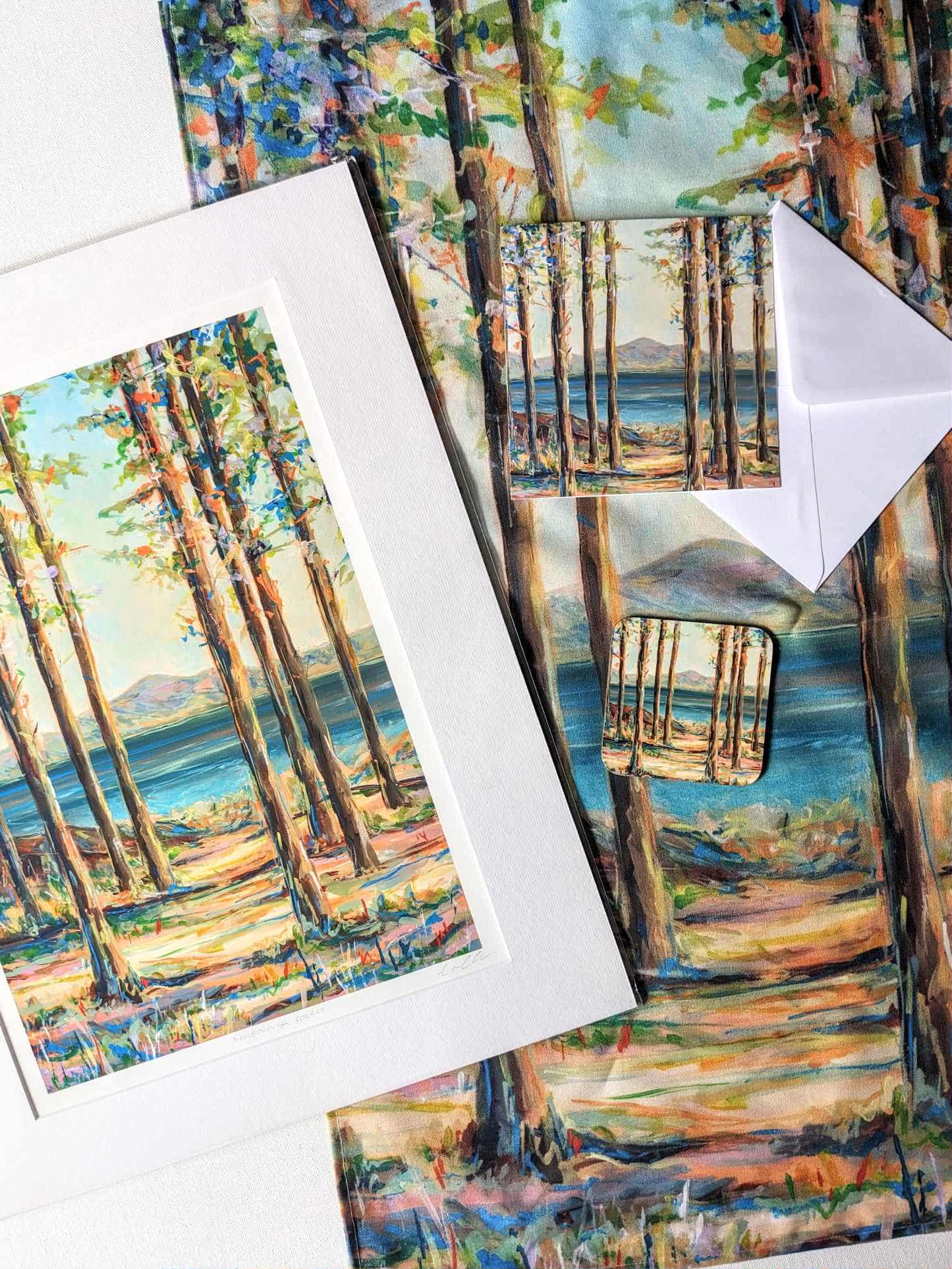 Artwork from all collections are printed on coasters, greetings cards, cushions and tea towels which make a great gift or keepsake